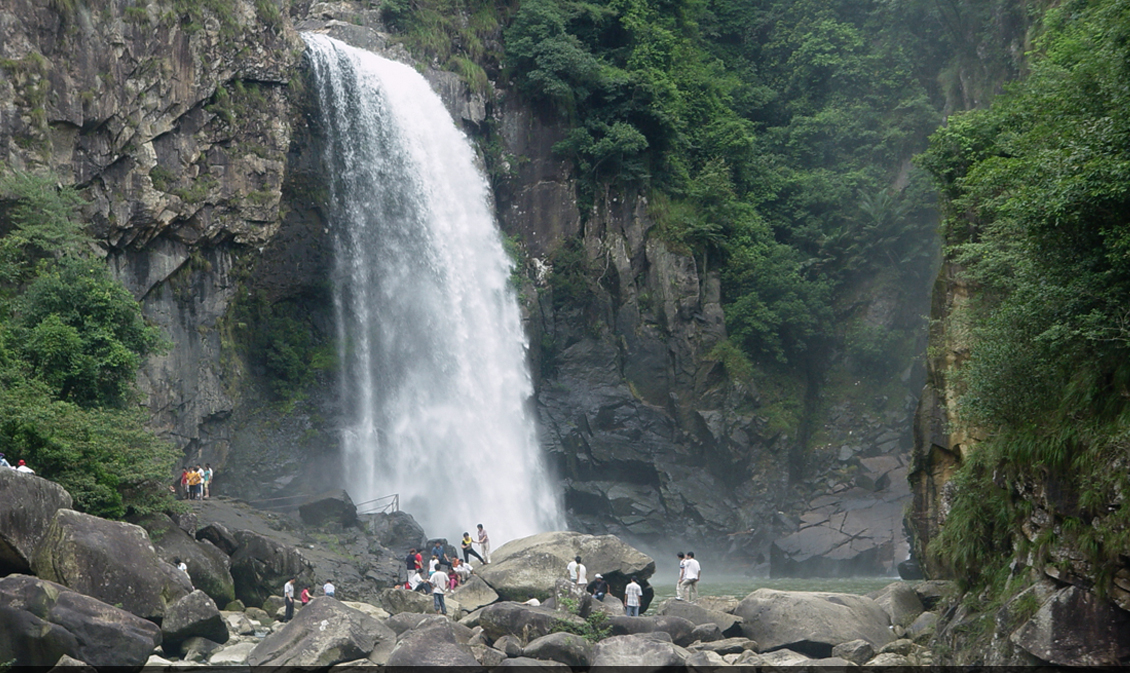 著名的九祭飞瀑从高耸的崖头猛泻入湖,水石相激,轰鸣如雷。瀑布高达百米,气势磅礴,颇为壮观;珠帘祭之东侧,水从盘龙山顶贴着石壁滑下,形成两股晶莹的细流,妙似玉琢的双柱。这就是玉柱祭。珠帘、玉柱同注一泓深潭,它虽小于九鲤湖,却是九祭最佳处,徐霞客盛赞“峻壁环锁,瀑流交映,集奇撮胜,唯此为最”。九祭飞瀑全长十余公里,沿途悬崖夹峙,蜿蜒曲折,奇胜不可名状。