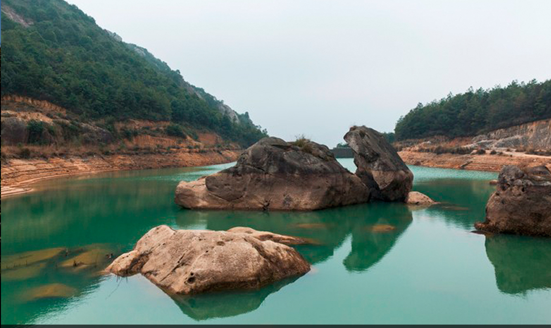 水、石之胜景于一处。湖的上游,坦荡的水底岩石上,遍布如臼如樽、似瓮似井等奇形怪状的洞穴,有的深不可测,相传为九仙炼丹的遗址。