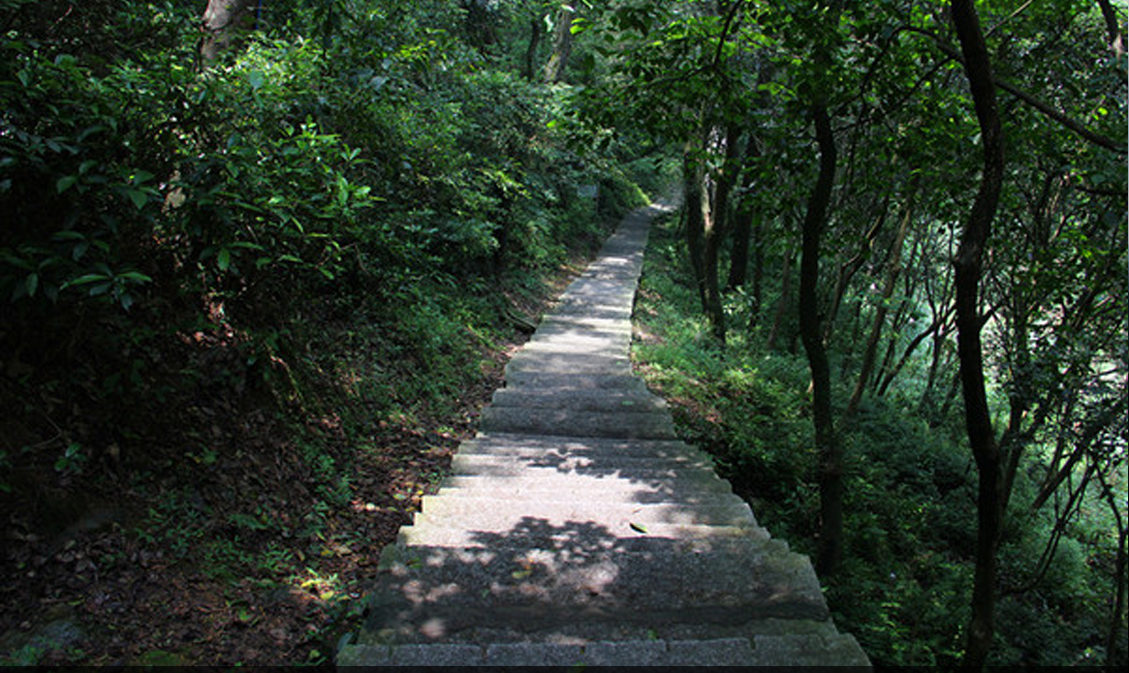 山天马山上有一潭名叫鼎湖,象一颗蓝幽幽的宝石嵌在山间。湖的一侧,有石宝、龙首、双兔、峭壁四峰;湖的另一侧,有一条登山小径,穿崖绕壁,蜿蜒而上,通往百米高的“天梯”。